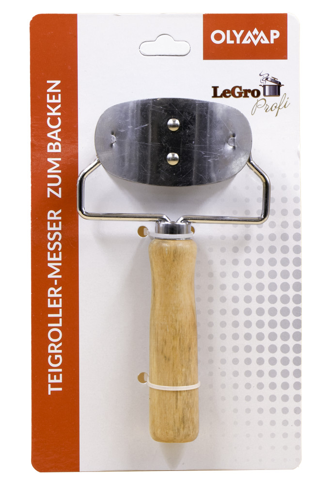 Nôž na krájanie cesta na vareniky, kruh Ø 7 cm, z nerezovej ocele s drevenou rukoväťou, 9 x 18 cm.