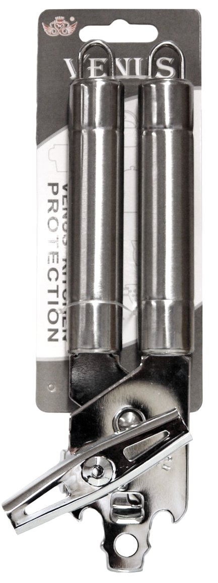 Návod na použitie: Umiestnite otvárač na konzervy na okraj plechovky a otáčajte skrutkou, kým nie je možné veko sňať.
