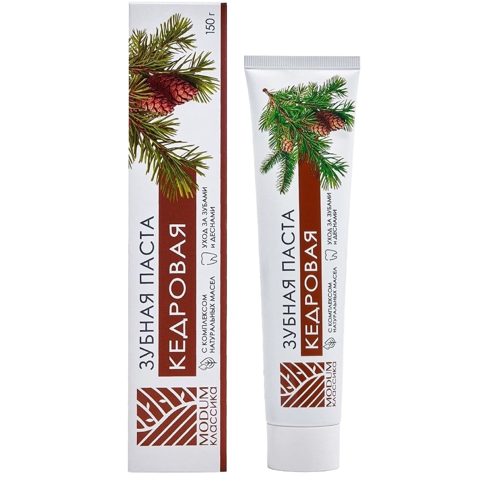 Pasta „Cédrová“ zo série „Klasika“ od Modum — posilňujúca pre zuby a ďasná, s prírodným cédrovým olejom a mätovým tónom. Pomáha zmierniť zápal, posilňuje mäkké tkanivá ďasien, zlepšuje krvný obeh a má prirodzené antioxidačné vlastnosti. Vhodná na každodennú starostlivosť.
