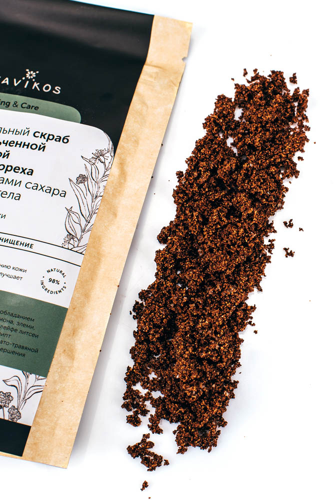 Přírodní peeling s drcenými ořechovými skořápkami a krystaly cukru na obličej a tělo. Pro suchou a dehydratovanou pokožku. Funkční složky: skořápky z vlašských ořechů, krystaly cukru, šípkový extrakt, rostlinné oleje z kokosu, mango, kamélie, vitamíny C, E, F. Peeling důkladně čistí, zvlhčuje a vyživuje pokožku, vyrovnává a zlepšuje pleť. Díky rozdrceným skořápkám vlašských ořechů a krystalům cukru peeling jemně čistí pokožku od nečistot a odumřelých buněk a zlepšuje pronikání účinných látek. Oleje z kokosu, manga a kamélie mají regenerační a protizánětlivé vlastnosti, zvyšují bariérovou funkci pokožky a saturují je vitamíny a mastnými kyselinami důležitými pro energii a krásu pokožky. Extrakt ze šípky obnovuje rovnováhu vody a soli, zlepšuje mikrocirkulaci a metabolické procesy. Po nanesení peelingu je pokožka viditelně vyhlazena a pleť se zlepší.