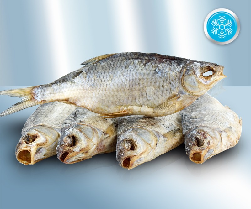 Plotice (Rutilus rutilus) solená a sušená. S hlavou, nevykuchaná.
