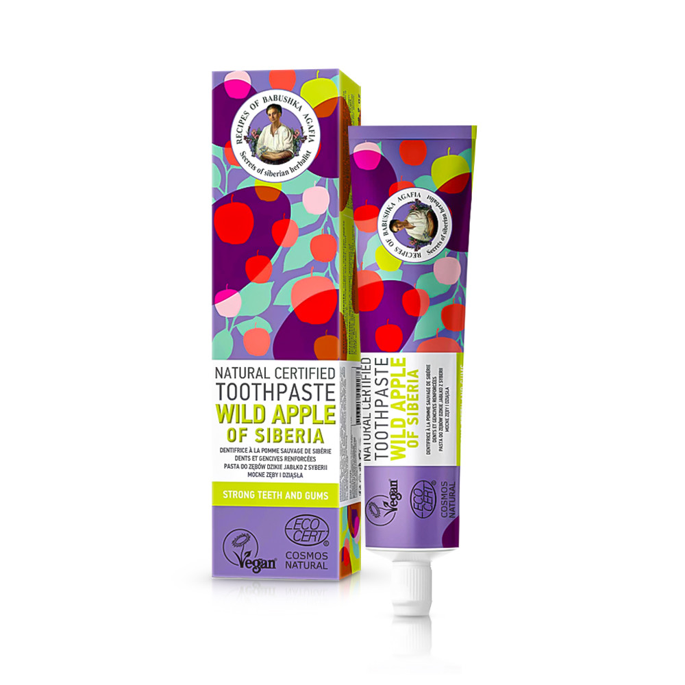 Zubní pasta obsahuje 99% složek přírodního původu. Základem pasty je pektin, který odstraňuje toxiny. Extrakt z medových jablek posiluje zubní sklovinu, má tonizující účinek na dásně. Organický skořicový extrakt posiluje a rozjasňuje zubní sklovinu. Ovocné kyseliny jemně bělí. Přírodní ovesná povrchově aktivní látka je obzvláště jemná, jemně čistí a podporuje lepší pronikání účinných látek do dásní, přátelský k životnímu prostředí. Vitamín C má antioxidační účinky.