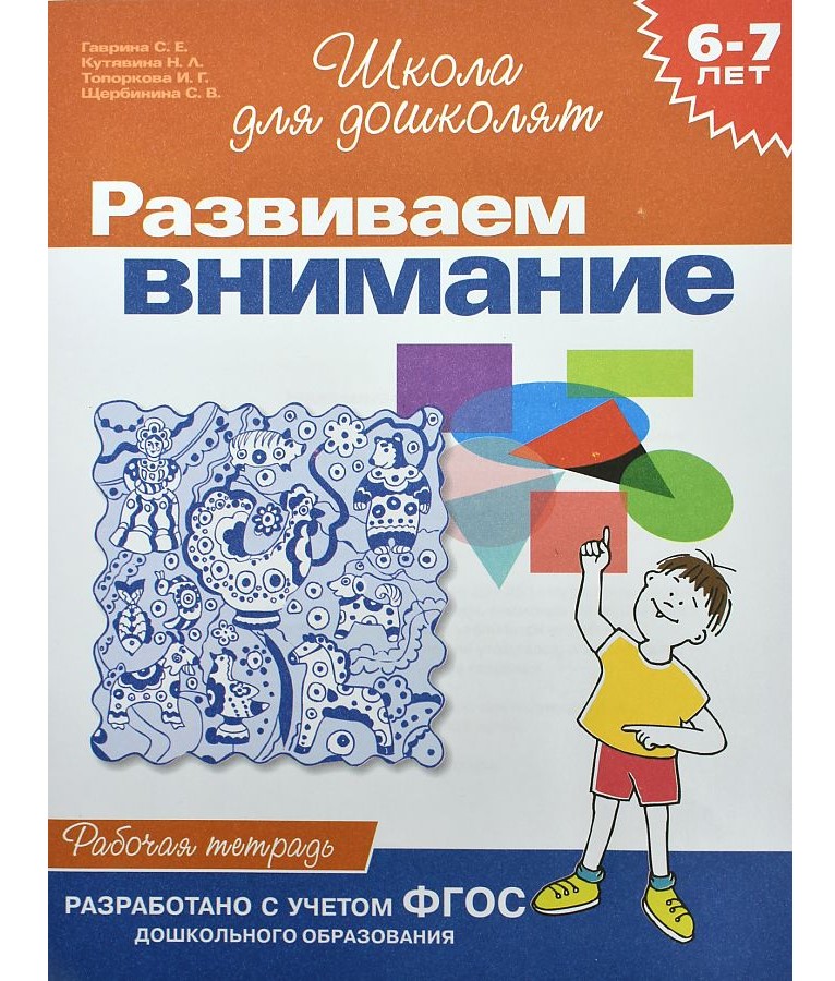 Vážení rodičia a učitelia! Tu je pracovný zošit, ktorý je zameraný na rozvoj pozornosti u detí predškolského veku. Dobrá pozornosť je najdôležitejšou podmienkou úspešnej školskej dochádzky. Koniec koncov, v škole sa dieťa musí sústrediť na vysvetľovanie učiteľa a plnenie úloh, udržiavať svoju pozornosť po dlhú dobu (celá lekcia je veľa) a nenechať sa rozptyľovať cudzími záležitosťami. Pravidelným štúdiom tejto knihy po dobu 20 – 25 minút denne sa vaše dieťa naučí ovládať svoju pozornosť, pozornosť vášho bábätka sa stane stabilnejšou a jej objem sa zvýši. Z knihy môžete študovať buď samostatne, alebo so skupinou detí. Prajeme vám úspech! .