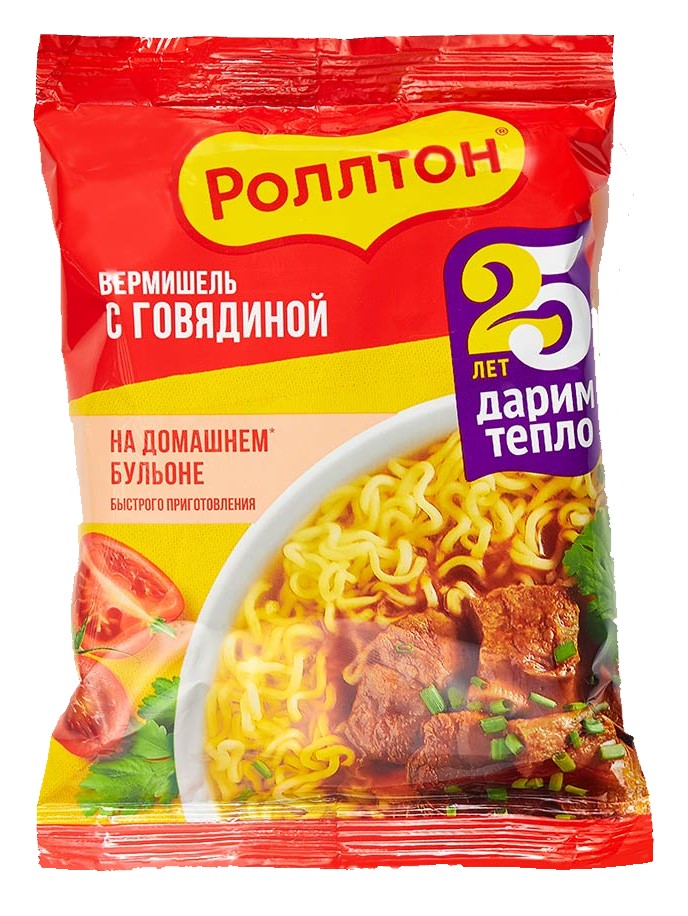 Zloženie: smažené rezance (pšeničná múka, palmový olej, voda, soľ, farbivo E160a), polievkový základ (soľ, cukor, zvýrazňovače chuti E621, E631, E627, sušená zelenina (cesnak, paradajka, cibuľa) , slnečnicový olej, aróma, antioxidant E306.