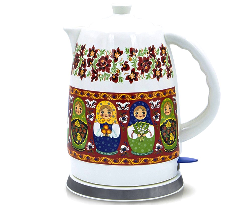Pitie čaju má v Rusku stáročnú tradíciu. Ruský čajový obrad sa vyznačuje hojnosťou čaju, maškrty a príjemnou spoločnosťou. Klasickou verziou tejto tradície je použitie čierneho (cejlónskeho, indického a čínskeho) čaju s mliekom a cukrom. Pre variant „Čaj pre dvoch“ a pre každodenné pitie využijete zelené, ale aj bylinkové a ovocné čaje v celej ich rozmanitosti. Rýchlovarná kanvica "matreška" je vyrobená z vysoko kvalitnej keramiky. Má nádherný dizajn a stane sa dôležitým prvkom pri pití čaju a ozdobí vašu kuchyňu. Má vypínač, ktorý počas prevádzky svieti a automaticky sa vypína.