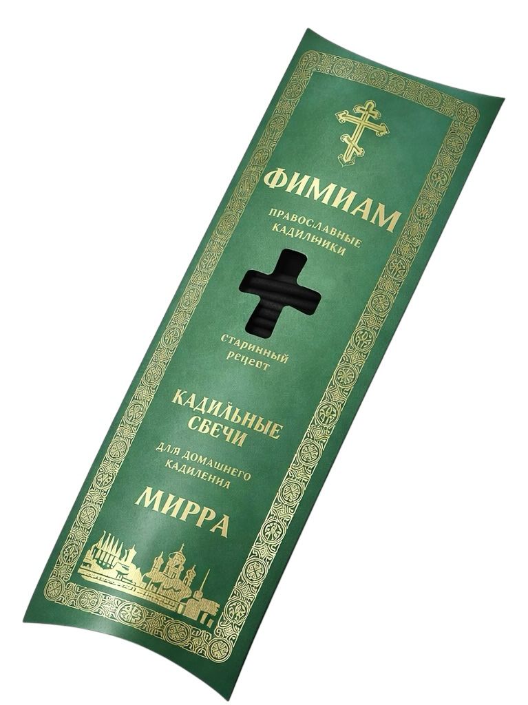 Kadidlové sviečky s vôňou myrhy sú určené na domácu modlitbu aj chrámové použitie. Vyrábajú sa ručne tradičnou technológiou s použitím prírodného kadidla, myrhy a rastlinných živíc. Pri horení vytvárajú rovnomerný, jemný dym s teplou, vonnou arómou, ktorá podporuje sústredenú modlitbu a upokojujúcu atmosféru.
