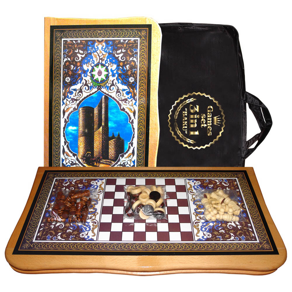 Šaški, nardy, šach 3v1 "Baku" 55x55cm