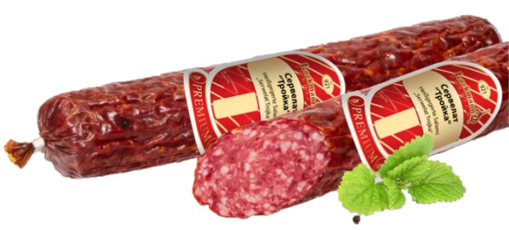 Zloženie: bravčové mäso, hovädzie mäso, konské mäso, slanina, jedlá soľ, dextróza, látka zvýrazňujúca chuť a vôňu: glutaman sodný, korenie, stabilizátor: difosfát, farbivo: karmíny, antioxidanty: kyselina askorbová, kyselina: kyselina citrónová sodný, aróma, dym.