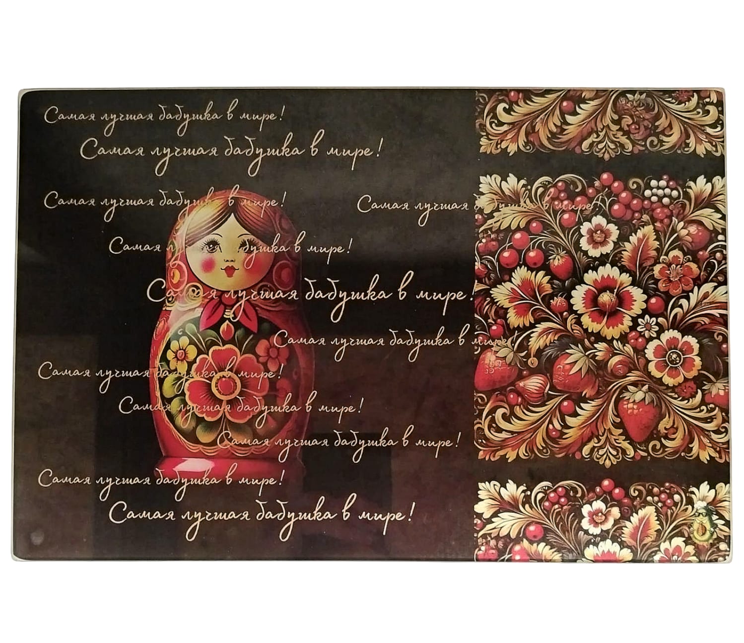 Darujte teplo a lásku blízkej osobe s touto krásnou sklenenou doskou! Nápis „Samaya luchshaya babushka v mire“ spraví z tohto kuchynského doplnku výnimočný a dojemný darček pre tú najdrahšiu babičku.