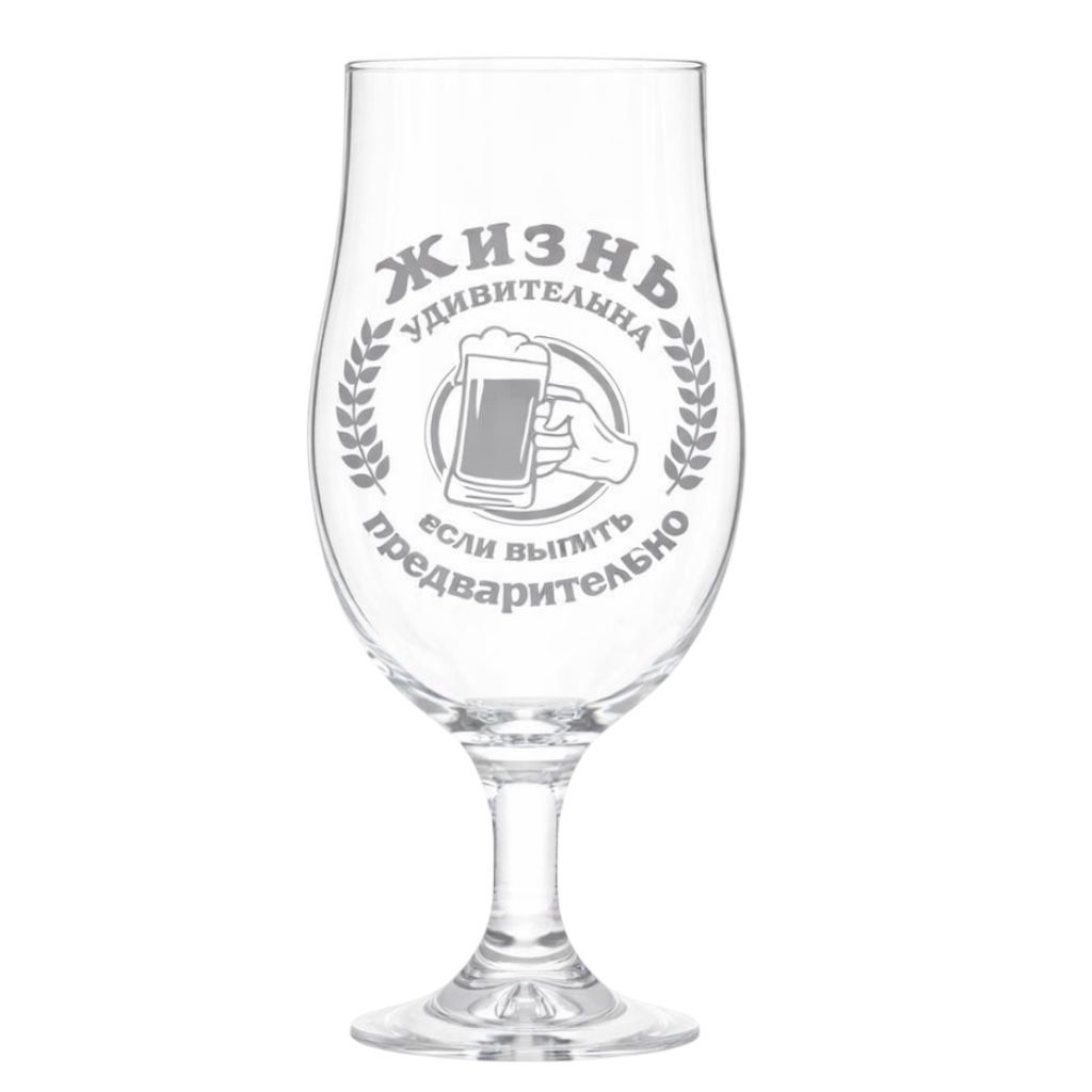 Originálny pivný pohár s humorným nápisom „Žyzn udivitelnaja jesli vypit predvaritelno“ zlepší náladu a bude skvelým darčekom pre milovníkov piva a humoru. Veľkorysý objem umožňuje naplno si vychutnať obľúbený nápoj, zatiaľ čo pevné sklo zaručuje spoľahlivosť a dlhú životnosť. Pohodlný tvar pohára dobre padne do ruky a zvýrazňuje chuť aj arómu piva. Ideálny na domáce použitie aj na veselé stretnutia s priateľmi.