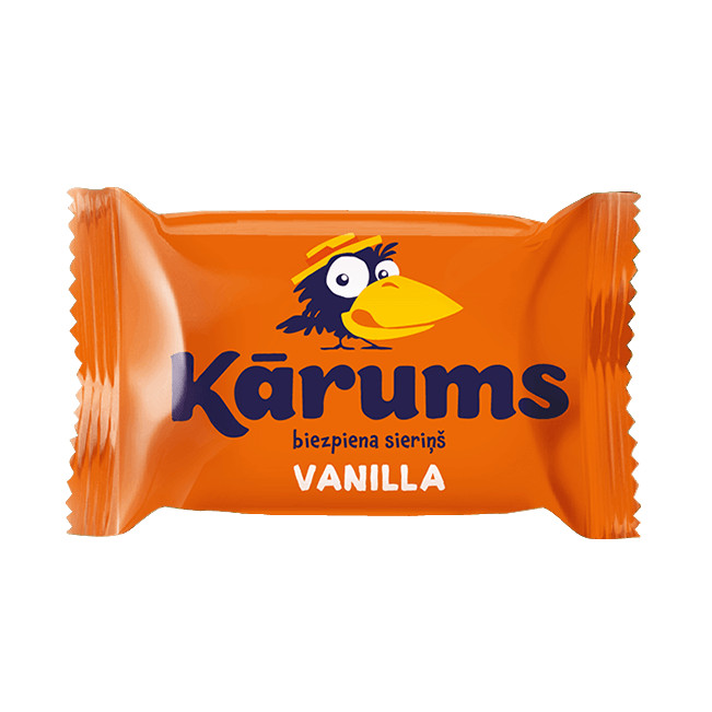 Glazovaný sladký tvaroh Kārums s vanilkovou arómou — malý porciovaný mrazený dezert (45 g), zložený z jemnej tvarohovej hmoty pokrytej čokoládovou polevou. Ideálny na ľahkú desiatu, dezert alebo ako doplnok ku káve či čaju.