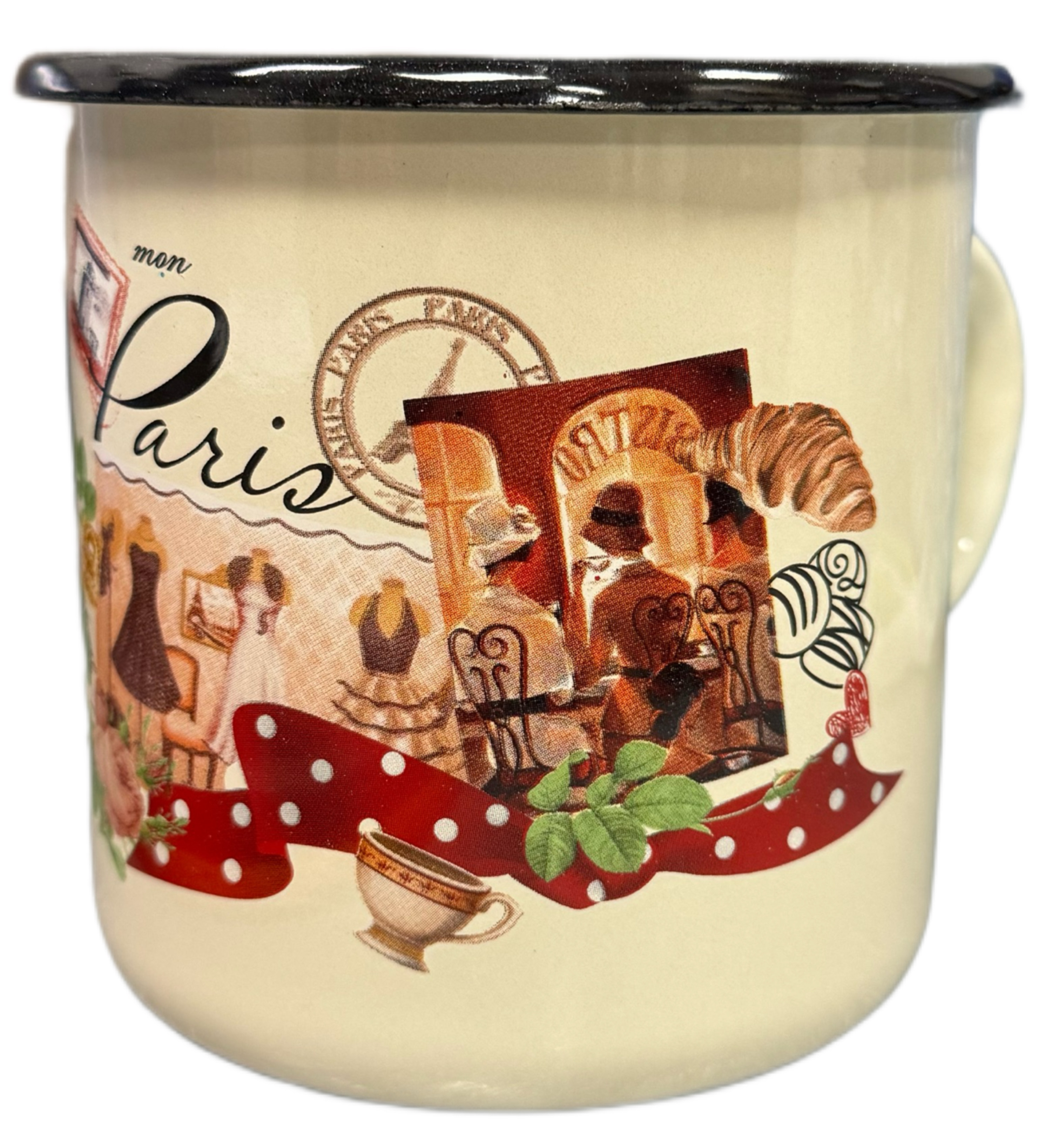 Smaltovaný hrnek bežový Ulice Paříže 1L