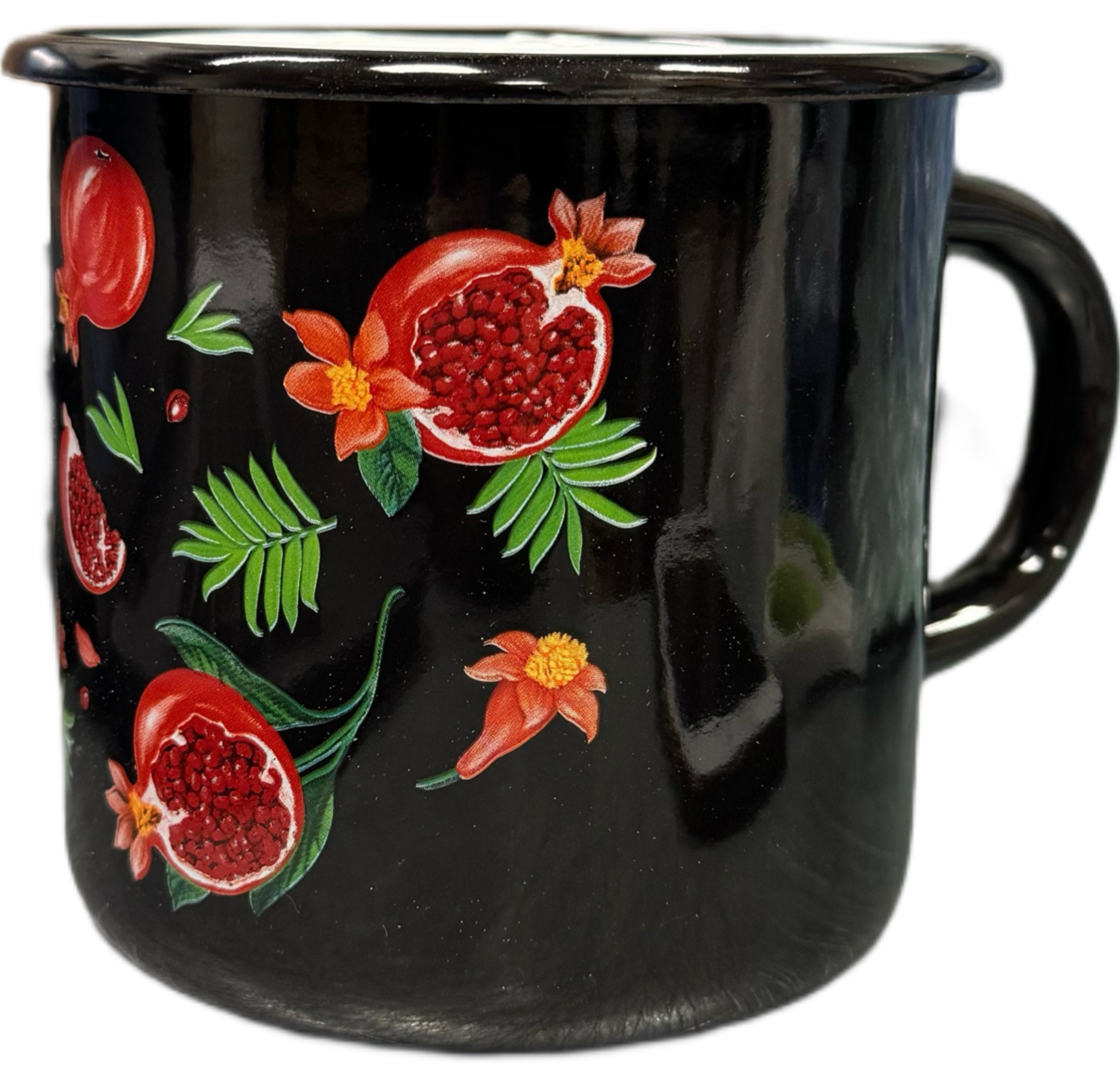 Smaltovaný hrnek černá Granátové jablko 1L