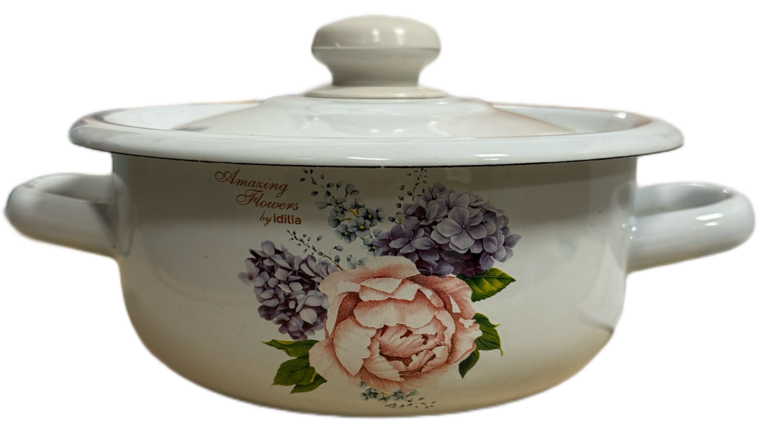 Smaltovaný kastrol 1,5L Pivoňka a šeřík
