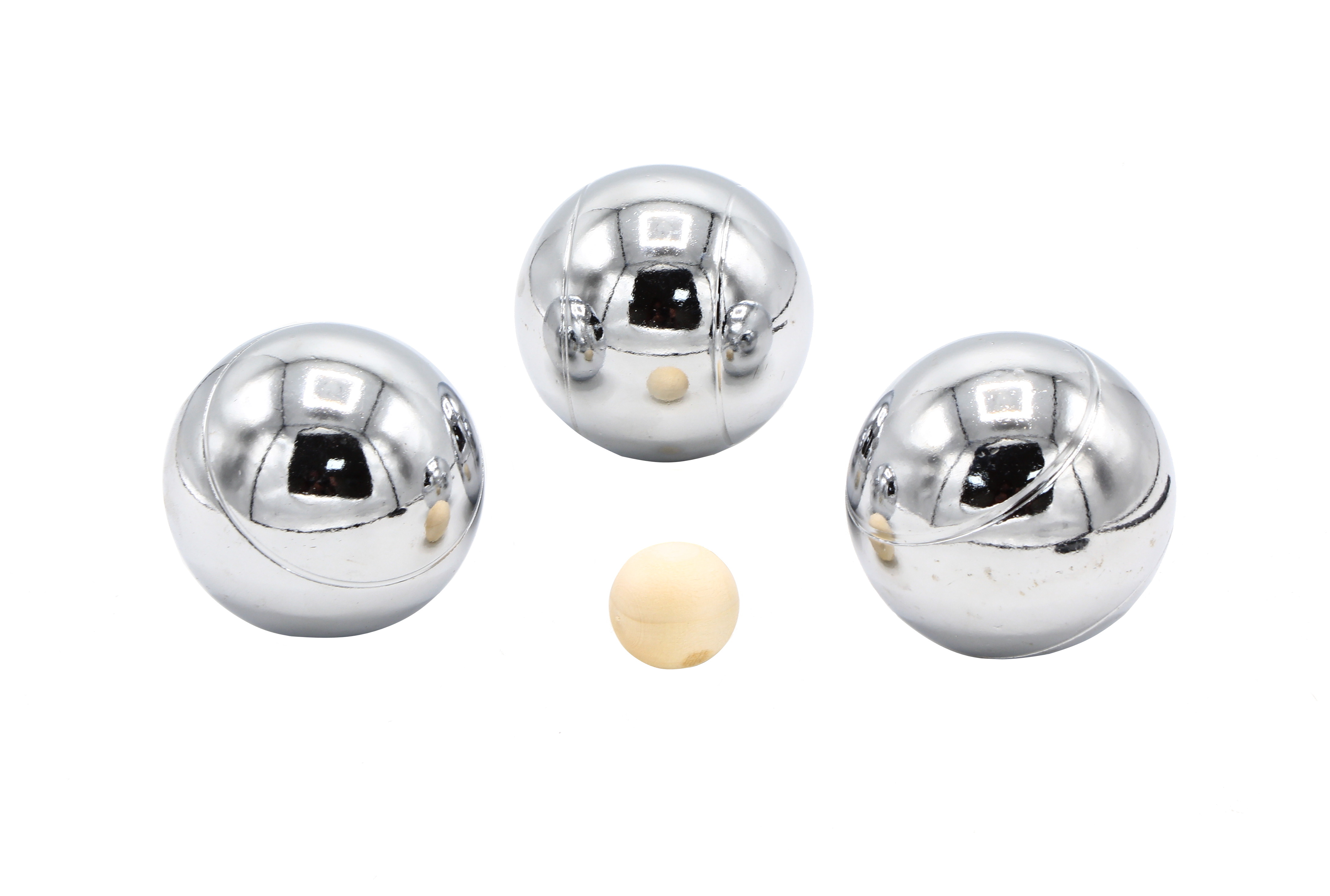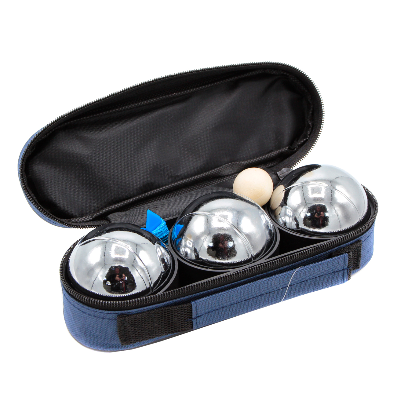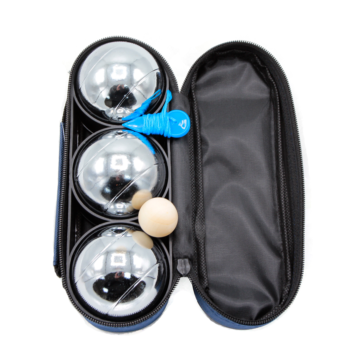 Vsebina: 3 kovinske krogle, lesena krogla-cochonnet, merilnik, torba