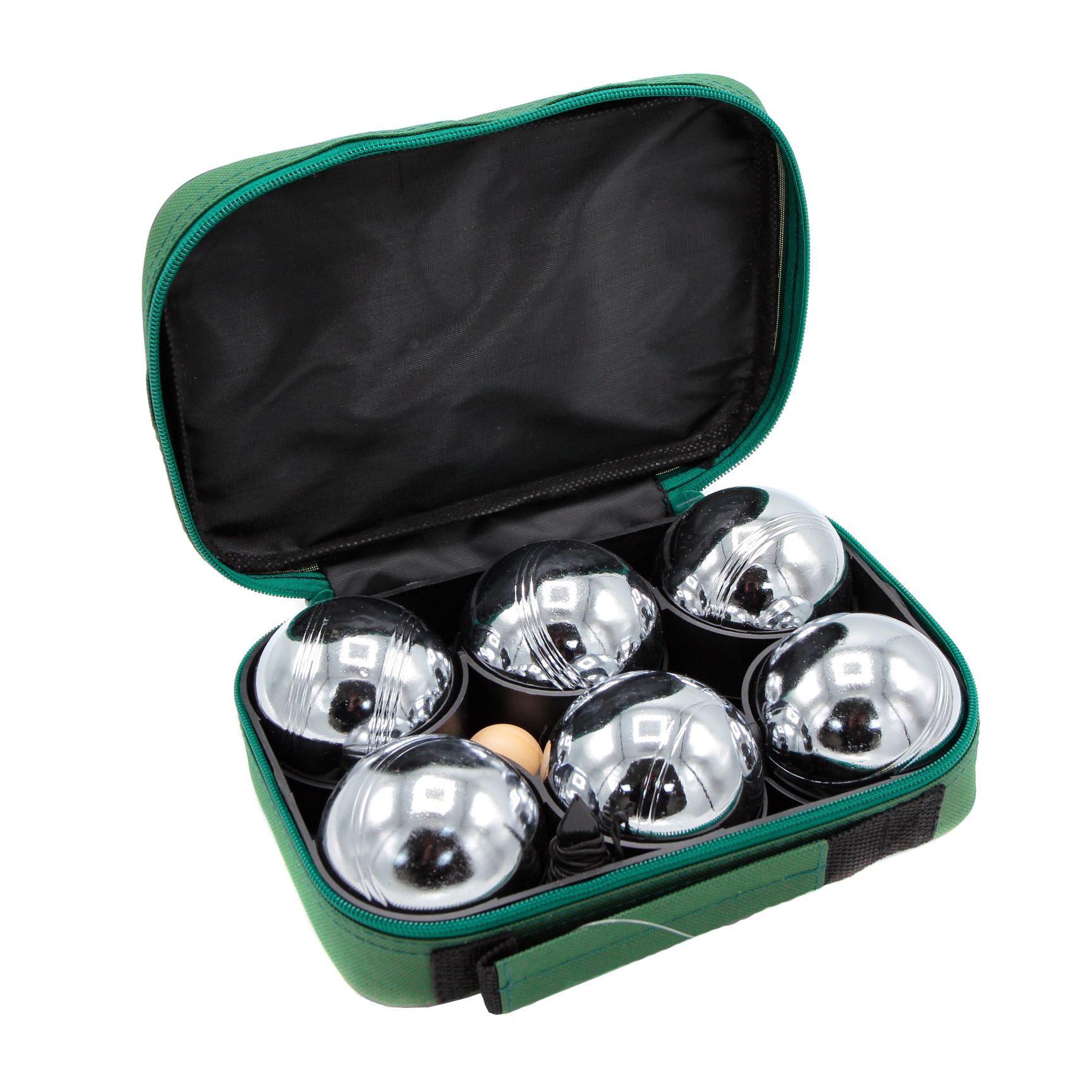 Vsebina: 6 kovinske krogle, lesena krogla-cochonnet, merilnik, torba
