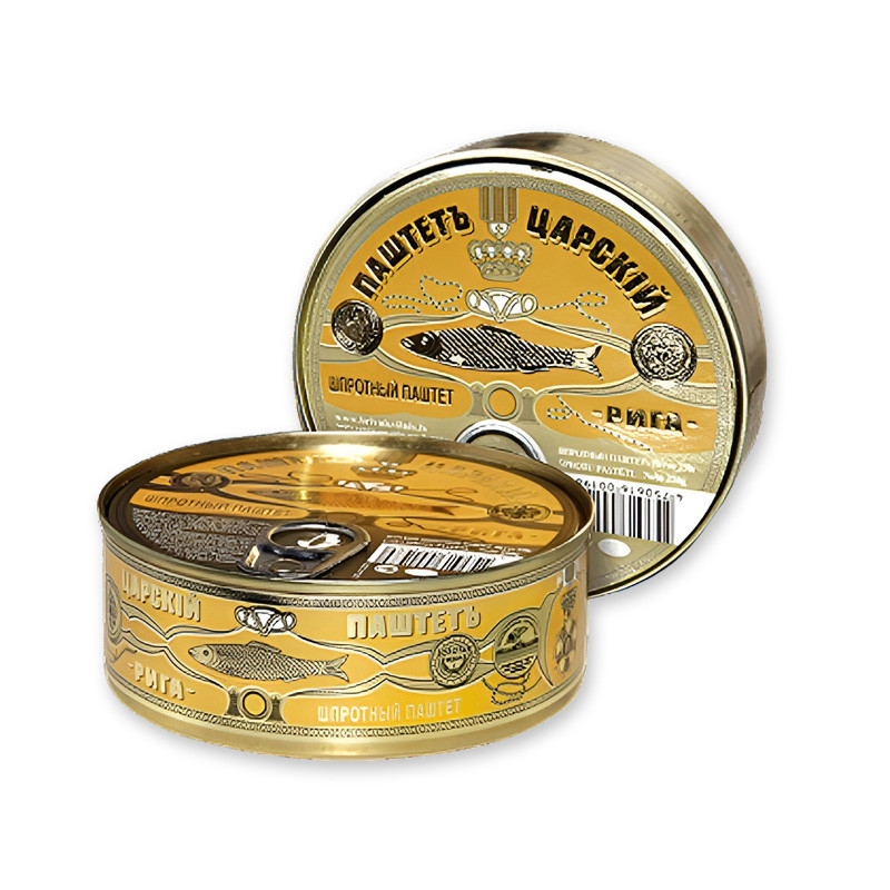 Šprotová paštéta Carská, 250 g — klasická rybia paštéta na báze údených šprotov. Jemná, pastovitá konzistencia a výrazná rybia chuť z nej robia univerzálnu voľbu na predjedlá a obložené chlebíčky.