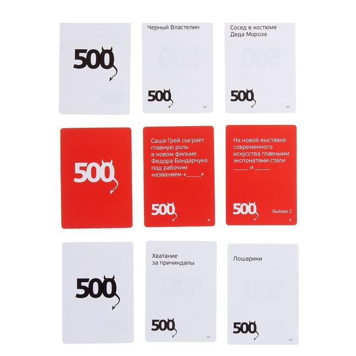 Stolová hra "500 zlobnyh kart 3.0. Novyj God" (od 18 let) je preprosta in zabavna namizna igra za odraslo družbo. Karte so seveda zlobne, včasih celo besne, vendar postanejo zelo smešne, če se z njimi pravilno spopadete. Ali boste uspeli obvladati teh petsto zlobnih kart in se temeljito zabavati?!