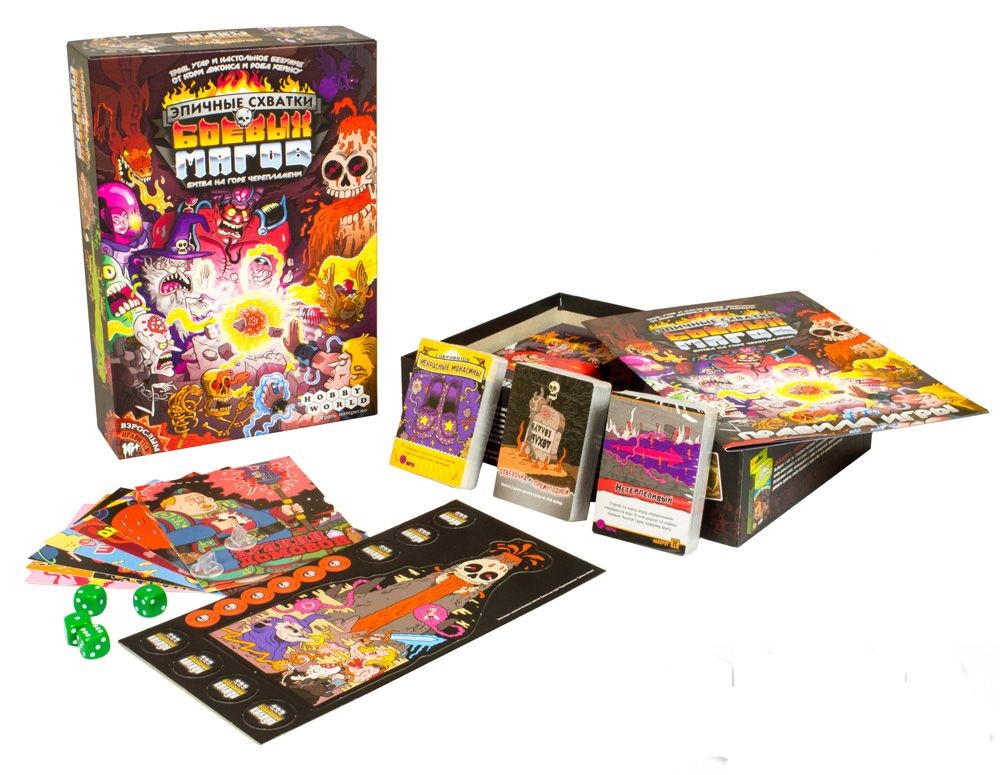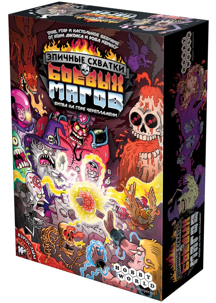 Epické súboje bojových mágov: Bitka na Hore Lebkoplamenov - jedinečná kartová hra zostavenie kúzelníckych kombinácií. Hra je naplnená čiernym humorom a úžasnými ilustráciami od Nika Edwardsa s výrazným sadizmom a grotesknou brutalitou. a naozajstný zmätok! Podobné hry ste ešte nevideli, to je isté!