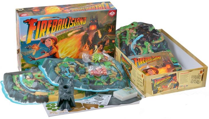 Herný set obsahuje: Pravidlá hry, Ostrov (s 3 oddelenými regiónmi), Figúrka Vul-Kara, 5 ohnivých gulí, 7 roztavených gulí, 4 figúrky postáv, Kocka, Srdce Vul-Kara, Rebrík, 2 mosty, 7 stromov, 30 akčných kariet , 12 fotografických kariet, 12 suvenírových kariet, 4 pamäťové karty, 36 pokladových žetónov, Žetón šťastné mince, 2 žetóny pre hru vo dvojici, Škála katastrof, Ústa, Vrtuľník, 2 paravány.