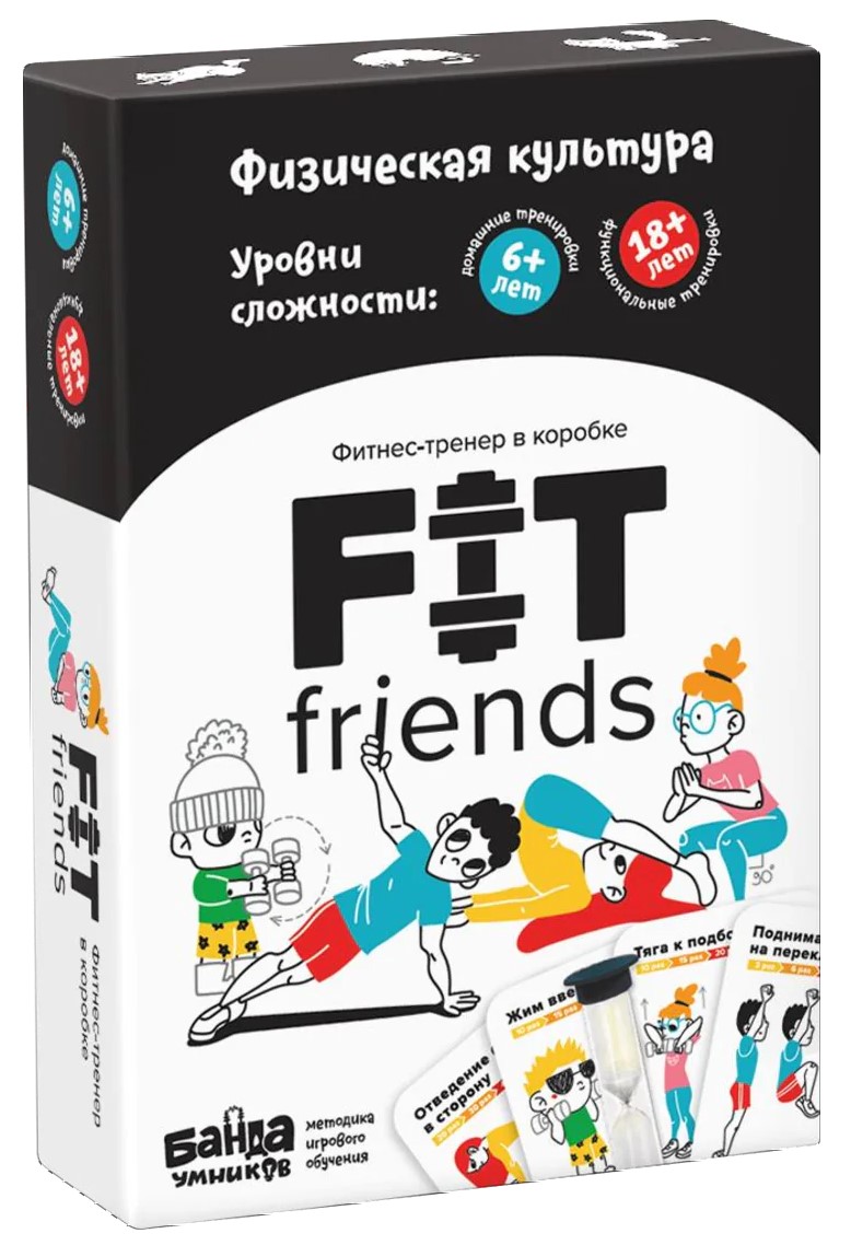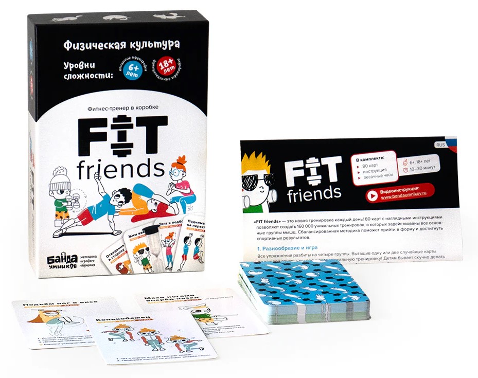 "FIT friends" - cvičenie na každý deň! Súbor obsahuje 80 kariet s jedinečnými cvikmi a názornými príkladmi prevedenia. Tento súbor kariet a ich kombinácia umožní vytvoriť neobmedzené množstvo tréningov rôznej obtiažnosti a pre každú svalovú skupinu. Malá krabička je vhodná na prenášanie, karty je možné vziať so sebou a cvičiť kdekoľvek, či už doma alebo na čerstvom vzduchu!
