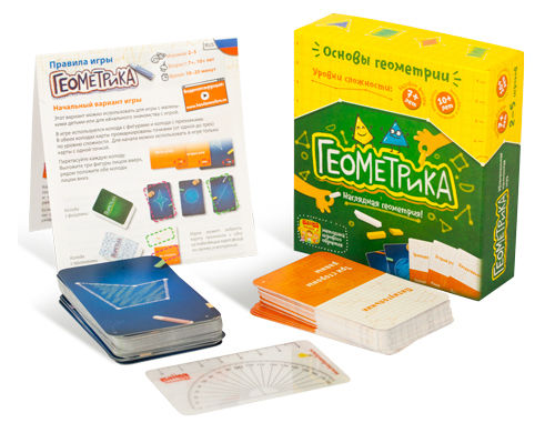 Stolová hra "Geometrika" (od 7 let) - zanimiva logična igra, v kateri spretnost tveganja in sprejemanje premišljenih odločitev stopita na prvo mesto. Med igro otrok z zanimanjem, naravno in sproščeno usvaja pojme geometričnih oblik in njihovih lastnosti, matematično terminologijo ter značilnosti geometričnih objektov.