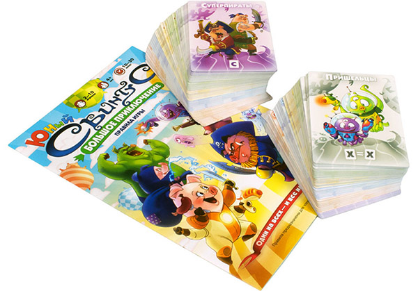 Obsah: 64 bežných kariet, 80 superkariet, 48 kariet pirátov, duchov a vnějších pozemšťanů, 4 karty pre vašu tvorbu a pravidlá hry.