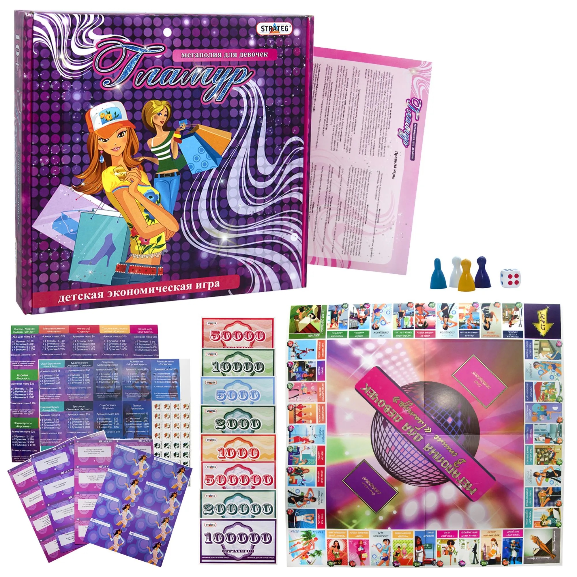 Stolová hra "Megapolija dlja devoček. Glamur" (od 10 let) je ustvarjena posebej za male modne navdušenke! Gre za različico priljubljene igre "Monopolija", razlika pa je le v tem, da je cilj uspešno nakupovanje in dopolnjevanje modne garderobe.