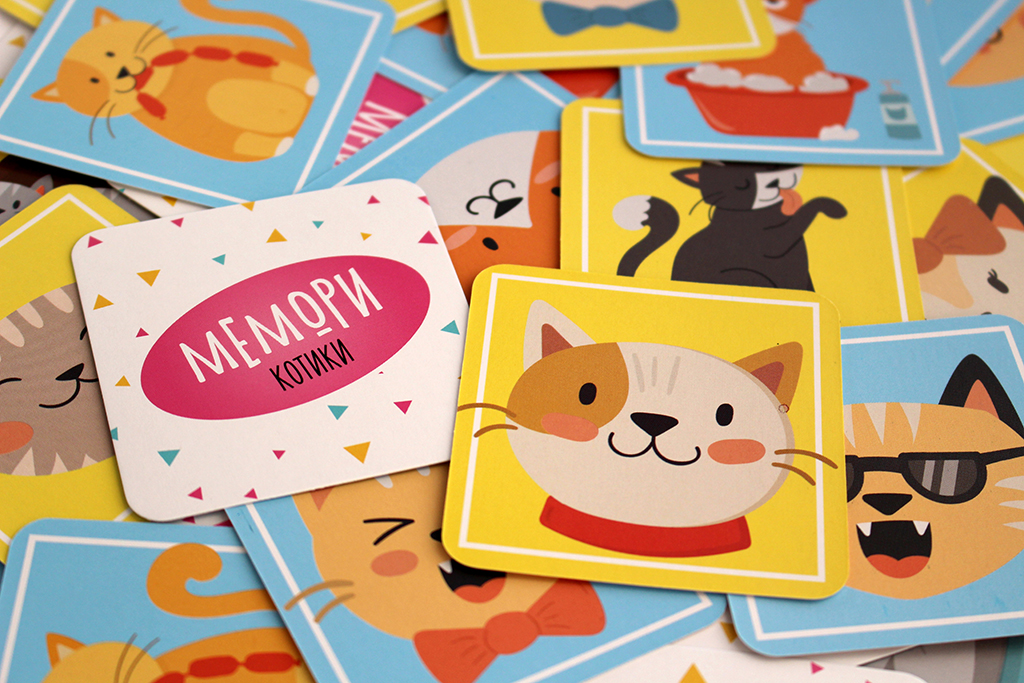 Stolová hra "Memori. Kotiki" (od 2 let) je klasična igra za zapomnjevanje enakih kart. Pravila so preprosta in razumljiva. Razporedite karte na mizo obrnjene navzdol. Igralci morajo v svojem potezu odpreti kateri koli dve karti. Če sta sliki na kartah enaki, igralec ju vzame k sebi in nadaljuje s svojim potezom. Naredili ste napako? No, karte se zaprejo, poteza pa preide na naslednjega igralca.