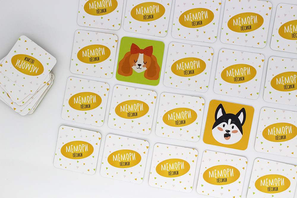 Stolová hra "Memori pesiki" (od 4 let) je koristna igra za celo družino, ki razvija vizualni spomin, pozornost in zaznavanje. Je klasična učna igra z intuitivno razumljivimi pravili in se razlikuje po odlični oblikovanosti. Vsak kuža ima svoj značaj.