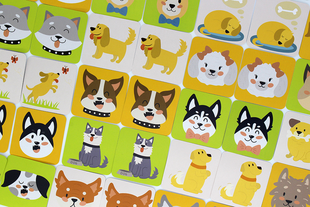 Igra se igra hitro in sproščeno. Karte se premešajo in razporedijo tako, da nihče ne vidi, kateri kužki so na njih. Prvi igralec obrne dve karti. Če sta kužka na kartah enaka, ju vzame v roko in obrne dve novi karti. Če sta kužka različna, je treba karte vrniti na njihova mesta in potezo predati nasprotniku. Prenos poteze poteka v smeri urinega kazalca. Zmagovalec je tisti, ki zbira več enakih slik kot drugi igralci.