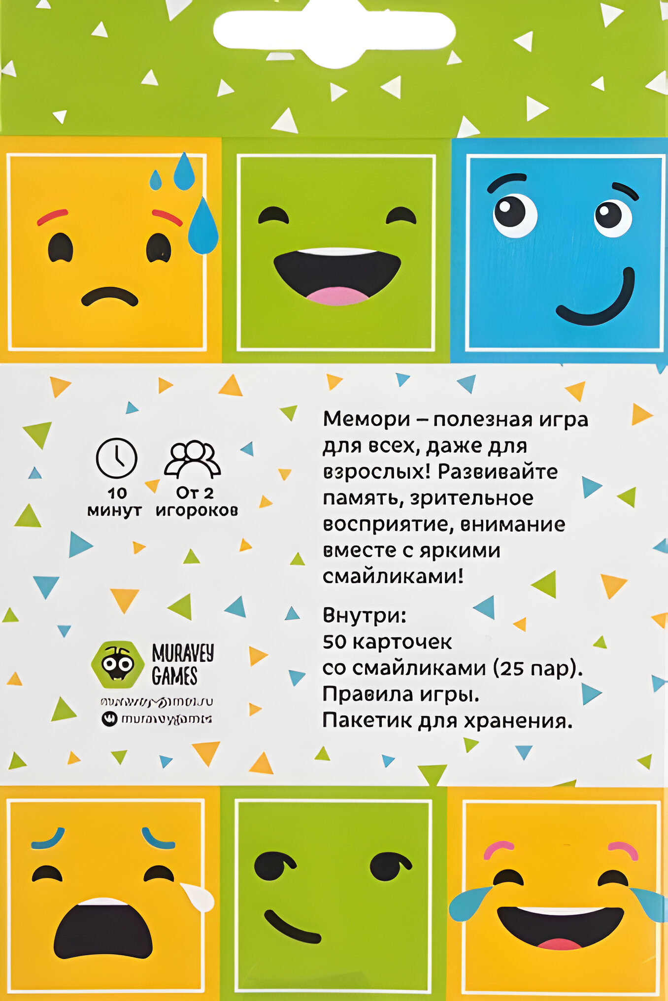 Stolová hra "Memori smajliki" (od 4 let) je koristna igra za vse, tudi za odrasle! Razvijajte spomin, vizualno zaznavanje in pozornost s smeškoti! Klasična izobraževalna igra s preprostimi pravili.
