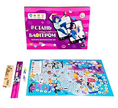 Stolová hra "Stan' blogerom" (od 5 let) ukr za sodobne otroke, ki jih zanima tema bloganja in družbenih omrežij. Taka igra prispeva k razvoju zdravega čuta za konkurenco in sposobnosti doseganja postavljenih ciljev. Pravila igre so zelo preprosta: postavite žetone na "Start", vrzite kocko in igrajte. Kdo bo hitreje dosegel priljubljenost ("Finish"), ta zmaga.
