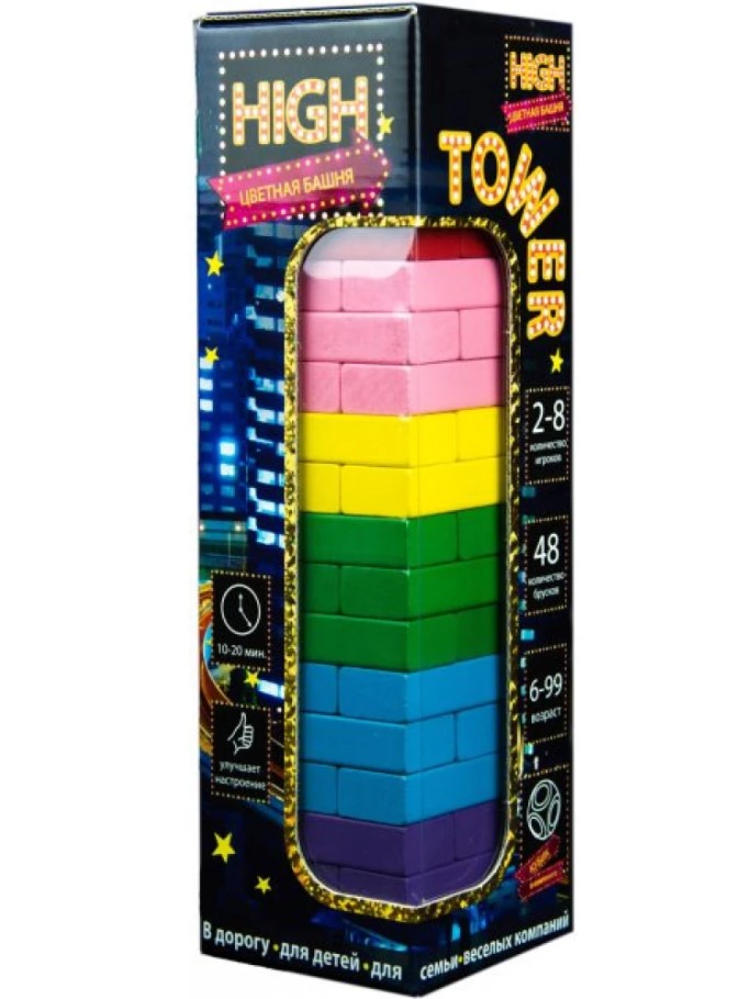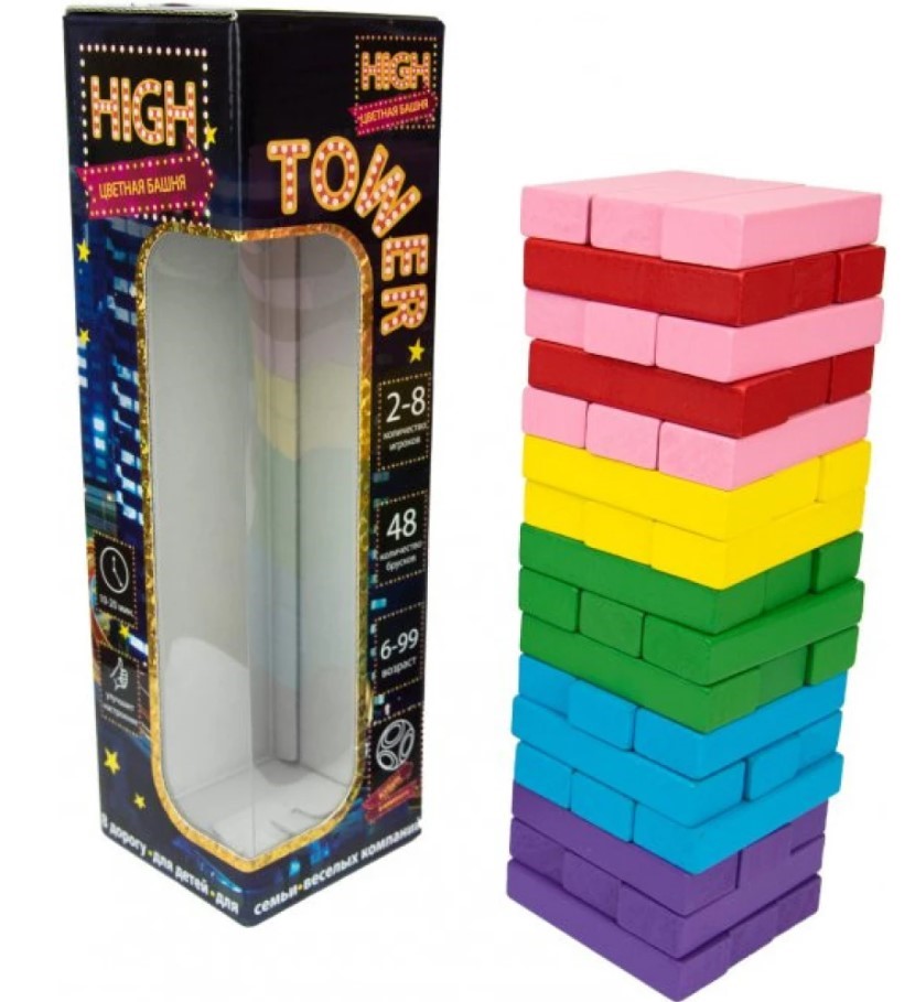 Stolová hra "Barvita stolpa" (za 6 let) - legendarna igra, ki je postala še boljša! Sedaj so tramovi različnih barv, v kompletu pa je tudi kocka s pobarvanimi stranicami. Kaj z njo? Igralci izmenično mečejo kocko, iz stolpa vzamejo tram barve, ki je padla na kocki, in ne dovolijo stolpu, da se podre. Izgubi tisti, ki podre stolp. Vsi drugi ostanejo zmagovalci. Igra pozitivno vpliva na koordinacijo, logično razmišljanje in razvija dobro reakcijo.