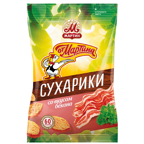 Složení: pšeničná mouka, pitná voda, krystalový cukr, jedlá sůl, slunečnicový olej, komplexní potravinářská přídatná látka „Bacon“: maltodextrin, sůl, hydratovaná krystalická glukóza, přírodní aromatické látky, aromatické látky, látky zlepšující chuť a aroma (glutamát sodný, guanylát sodný, inosinát sodný) ), granulovaný cukr, slunečnicový olej, barvivo extrakt z papriky, regulátory kyselosti: kyselina citrónová, kyselina mléčná, protispékavý prostředek amorfní oxid křemičitý, protispékavé činidlo uhličitan vápenatý.