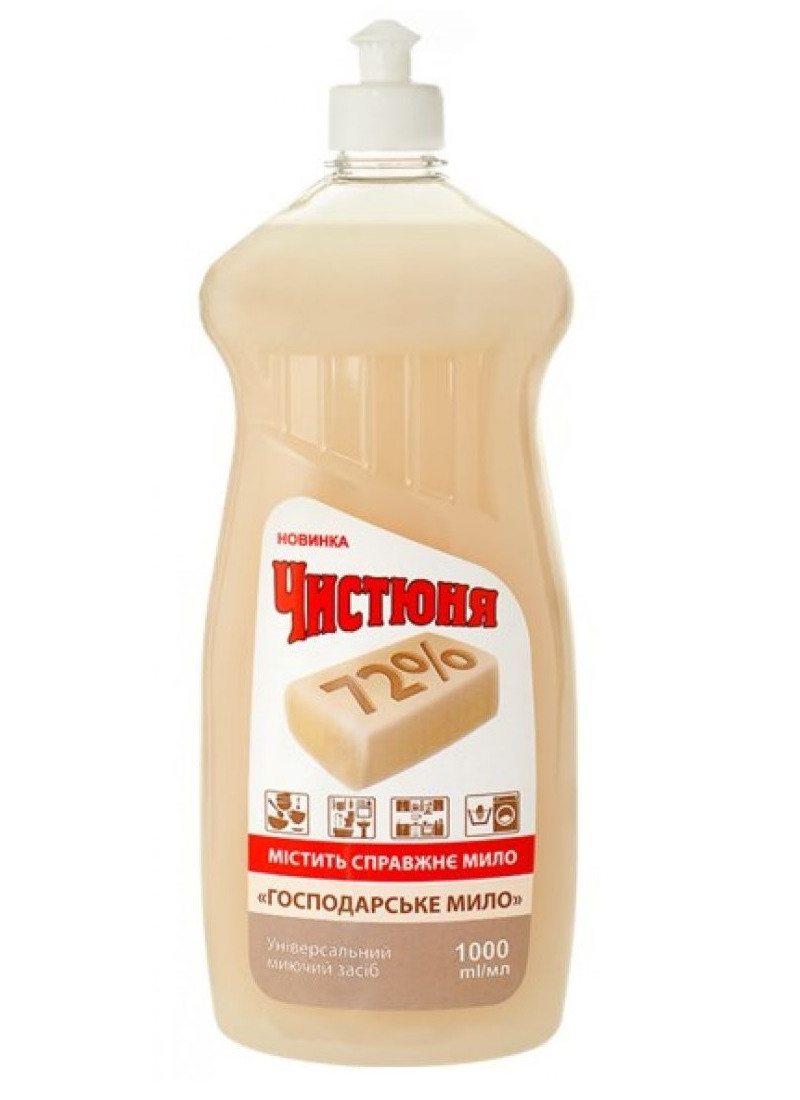 Tekuté domáce mydlo "Čistuňka" - prostriedok, ktorý svojimi vlastnosťami pripomína klasické domáce mydlo, ktoré poznáme z detstva. Účinne čistí silno znečistené povrchy (dvere, podlahy, umývadlá, dlaždice, kuchynské potreby atď.). Vhodné pre ručné aj strojné pranie.