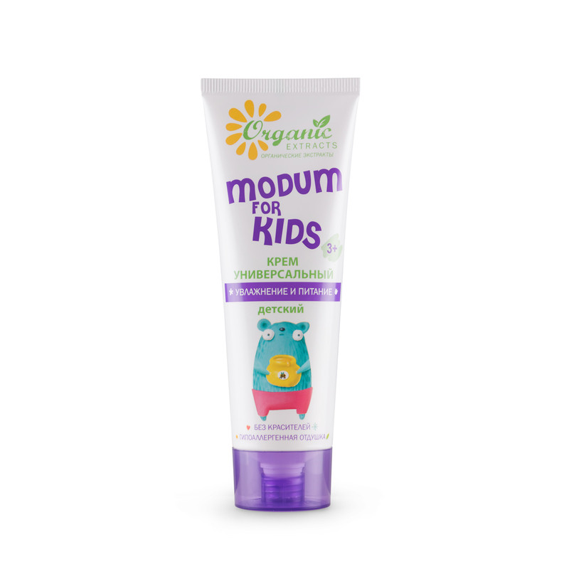 Univerzálny detský krém na tvár a telo "Hydratácia a výživa" For Kids Modum, vyrobený hlavne na organickom základe, poskytne malému pocit pohodlia. Obsahuje komplex živinových olejov z olivy, karité a broskyňových jadier, vďaka čomu intenzívne zásobuje pokožku živinami, vitamínmi, minerálmi, proteínmi a aminokyselinami.