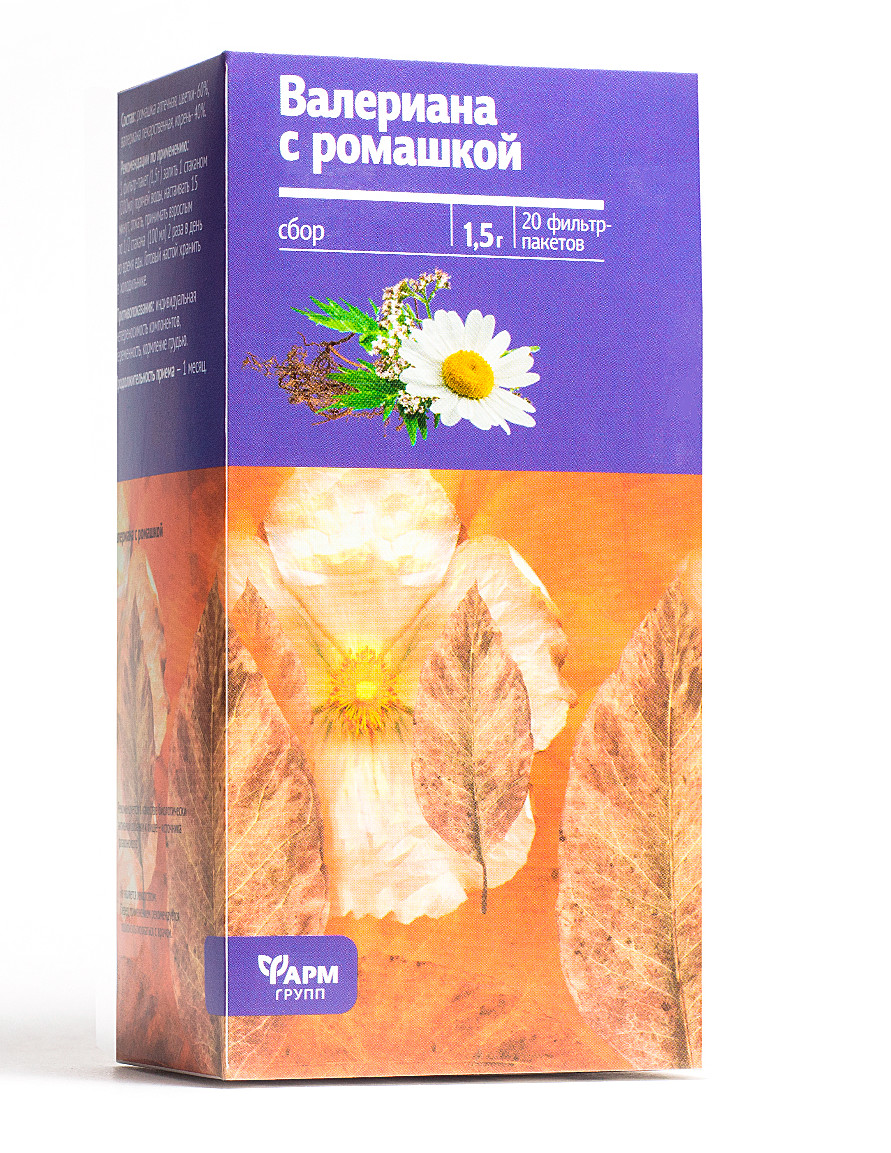 Zloženie: harmanček lekársky (kvety), valeriána lekárska (koreň).