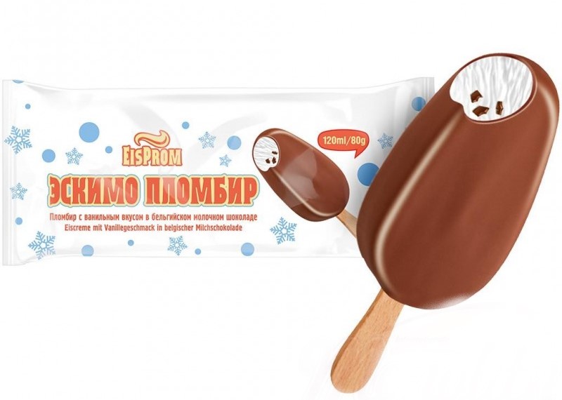 Zloženie: zmrzlina (smotana, mlieko, cukor, voda, sladené kondenzované mlieko (mlieko, cukor), maslo, glukózový sirup, sušené odstredené mlieko, emulgátor E471, stabilizátor E410, E412) smotanová a vanilková aróma, 1 %, (cukor, kakaové maslo, sušené plnotučné mlieko, kakaová hmota, mliečny tuk, emulgátor sójový lecitín, vanilková aróma).
