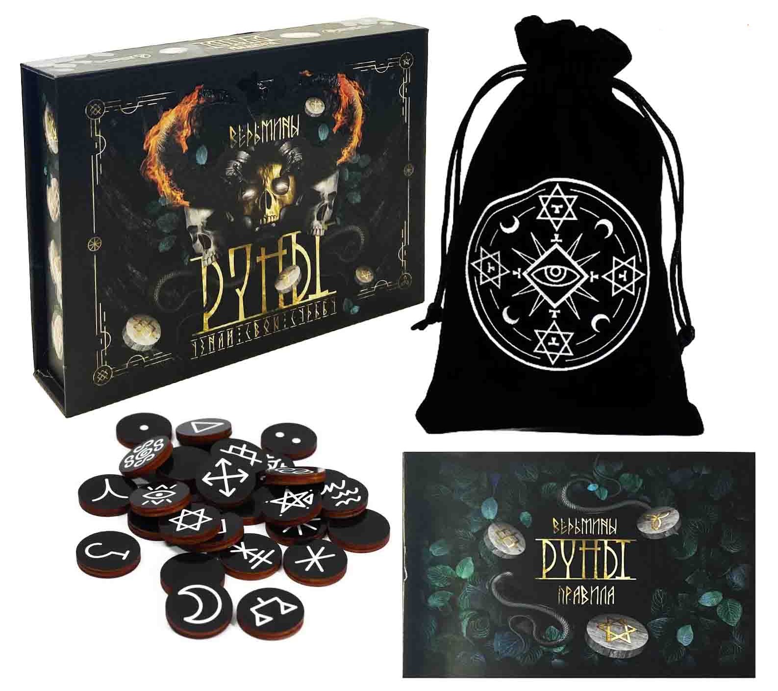 Obsah sady: 28 kusov rún, zamatové vrecko, návod.