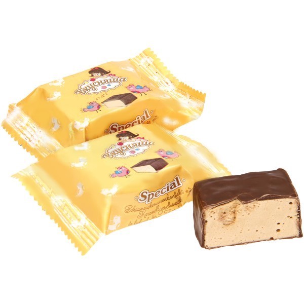 Zloženie: cukor, tuková poleva obsahujúca 30% kakaa (cukor, plne stužený palmový olej, srvátkové výrobky, sušené mlieko, kakaový prášok, emulgátor sójový lecitín, aróma, soľ), glukózový sirup, rastlinné tuky (palmový olej, palmový olej , slnečnicový olej, emulgátor E471, E322, aróma, farbivá (E160a, E150c), antioxidanty (E320, E304, E306), E321), vaječný bielok, cukor, kondenzovaný mliečny výrobok (plnotučné mlieko, cukor, laktóza), nízkotučný kakaový prášok, želírovacie činidlo agar-agar, regulátor kyslosti E270, aróma.