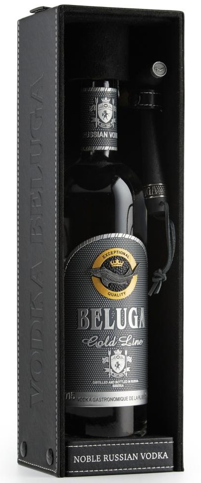 Vodka Gold Line 40% 1L Beluga v koženém boxe je prémiová limitovaná edícia vodky Beluga. Táto vodka dosahuje maximálnej čistoty vďaka päťnásobnému filtrovaniu (v porovnaní s tromi stupňami u iných sérií). Každá fľaša má vlastné a unikátne číselné označenie a tŕňom v oku je korková zátka ručne zapečatená voskom. K otvoreniu je pribalené špeciálne kladivo so štetcom.