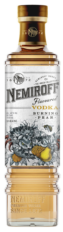 Vodka Nemiroff Burning Pear 1 l 40% je prémiový alkoholický nápoj, ktorý spája ultračistú vodku, bylinný extrakt podľa originálneho receptu zo 16. storočia, koncentrát prírodnej hrušky, med a chilli papričky. Proces zrenia v dubových sudoch dáva nápoju bohatú a vyváženú chuť s medovými a hruškovými tónmi, zakončenú jemným pikantným dozvukom.