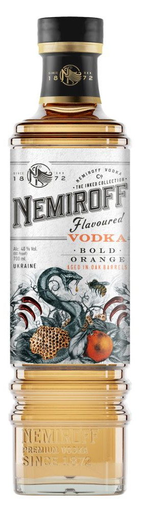 Vodka Nemiroff De Luxe Bold Orange 0,7 l 40% je prémiový alkoholický nápoj od ukrajinského výrobcu Nemiroff. Spája ultračistú vodku a prírodný pomarančový extrakt, čo nápoju dodáva bohatú a harmonickú chuť s výraznými citrusovými tónmi.