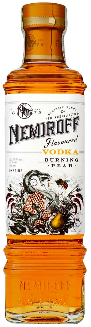 Vodka Nemiroff Burning Pear je prémiový produkt s úplne novým chuťovým vnemom. Jedná sa o kombináciu vlastnej originálnej ultračistej vodky podľa starej receptúry zo 16. storočia a hruškového koncentrátu. Tento nápoj má zamatovú, jemnú chuť, ktorá sa otvára sladkými medovo-hruškovými tónmi sprevádzanými trpkým zakončením. Odporúčame podávať vychladené alebo ako súčasť koktailov na báze vodky.
