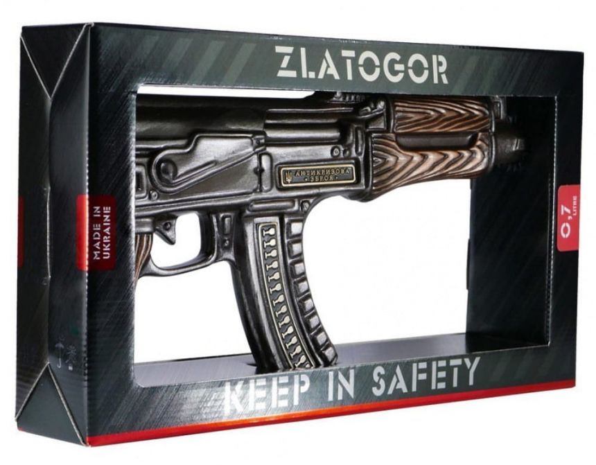 Limitovaná edícia ukrajinskej vodky Zlatogor, ktorá je naplnená do fľaše s podobou útočnej pušky AK-47. Vyrába sa z tých najkvalitnejších surovín a podľa najnovších technológií na základe receptúry odborníkov z Kyjevskej botanickej záhrady. Pri výrobe sa používa najčistejšia artéska voda z hĺbky 195 metrov.
