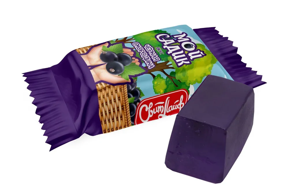 Zloženie: cukor, glukózový sirup, zahusťovadlo – pektín, regulátory kyslosti – kyselina citrónová, aróma: čierne ríbezle.