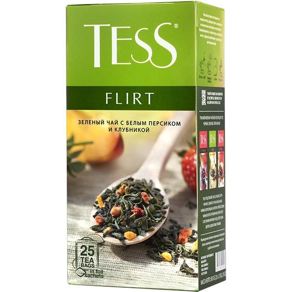 Zelený čaj Jahoda a broskyňa 25x1,5g Tess Flirt