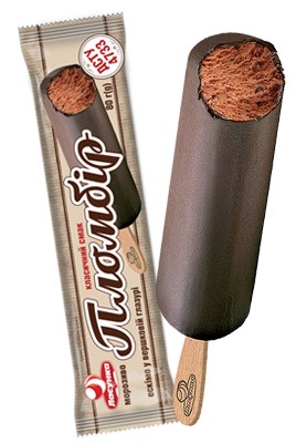 Zloženie: zmrzlina (plnotučné kravské mlieko, maslo, cukor, kakaový prášok, voda, sušené odstredené mlieko, stabilizátor do zmrzliny (emulgátor: mono- a diglyceridy mastných kyselín; stabilizátory: karubová guma, guarová guma, škrob ) 25% (maslo, cukor, kakaový prášok, emulgátor sójový lecitín, aróma vanilín).