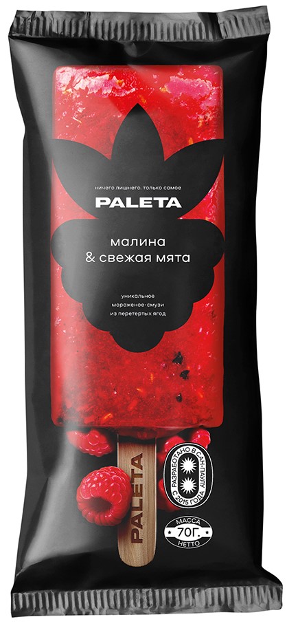 Zmrzlinové smoothie „Malina a čerstvá máta“ 70g Paleta je osvěžující dezert, který kombinuje přírodní maliny a čerstvou mátu. Výrobek má jasnou, bohatou chuť a texturu typickou pro smoothie, díky čemuž je lehký a zdravý. Smoothie zmrzlina je ideální pro ty, kteří oceňují přírodní ingredience a svěží ovocné příchutě.